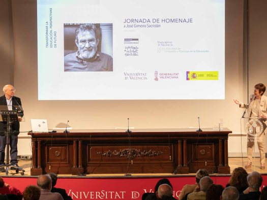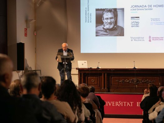 - Acceso a la reseña de la Jornada «La UV ha acollit aquest 26 d’abril en La Nau un homenatge al Dr. José Gimeno Sacristán». UNITAT WEB I MÀRQUETING. Universitat de València.